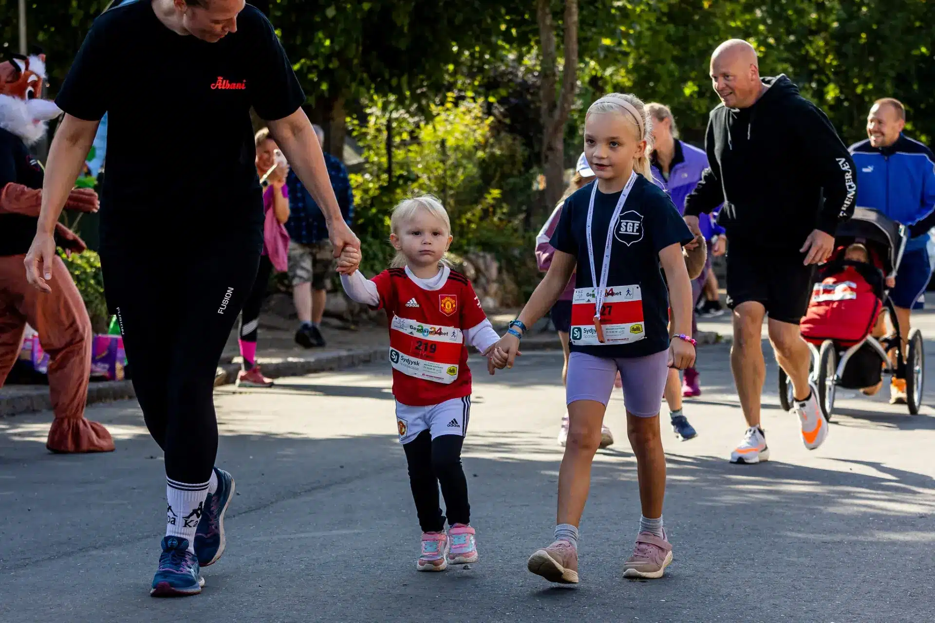 Når vi svinger væk fra den brede grusvej, er der depot, hvor løberne kan drikke lidt friskt vand – ligesom de voksne, når de løber.